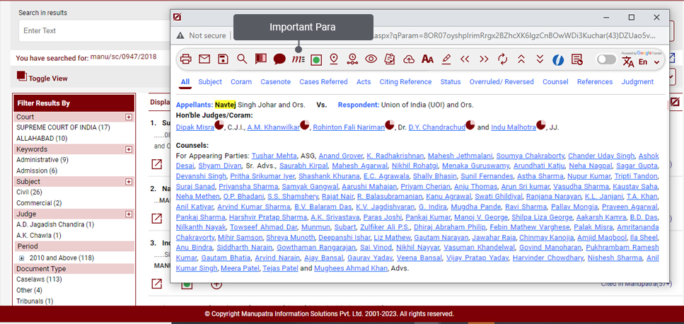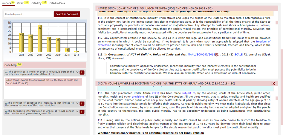 m-Para® is a feature by which user can view the key paragraphs of any judgment, number of times the key paragraph/s has been referred in Supreme Court judgments, details of the SC judgments in which these paragraphs have been referred, along with the treatment given by Supreme Court to these key paragraphs.