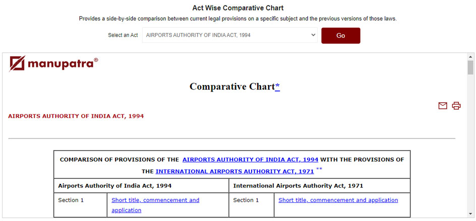 Comparative Chart is comparative insight between the provisions of law on a particular subject being in force at the present date and the old provisions of law on that particular subject.