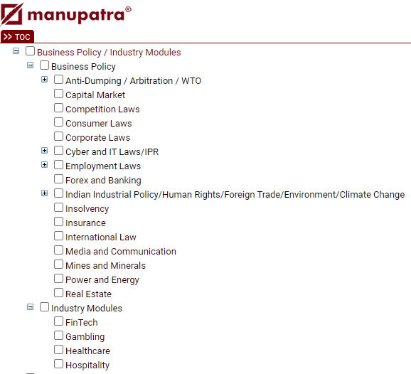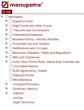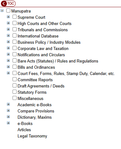 Table of Content [TOC], which lists the Databases. Headings may be collapsed or expanded individually by clicking on the + and - icons.