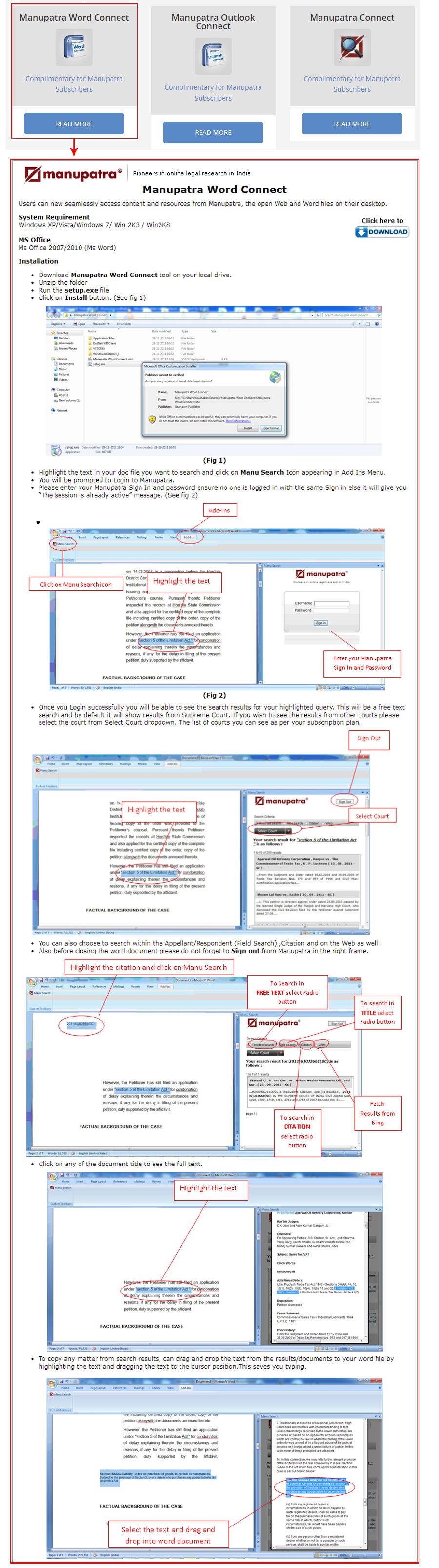 MS Word users seamlessly access content & resources from Manupatra, the open Web & Word files on their desktop