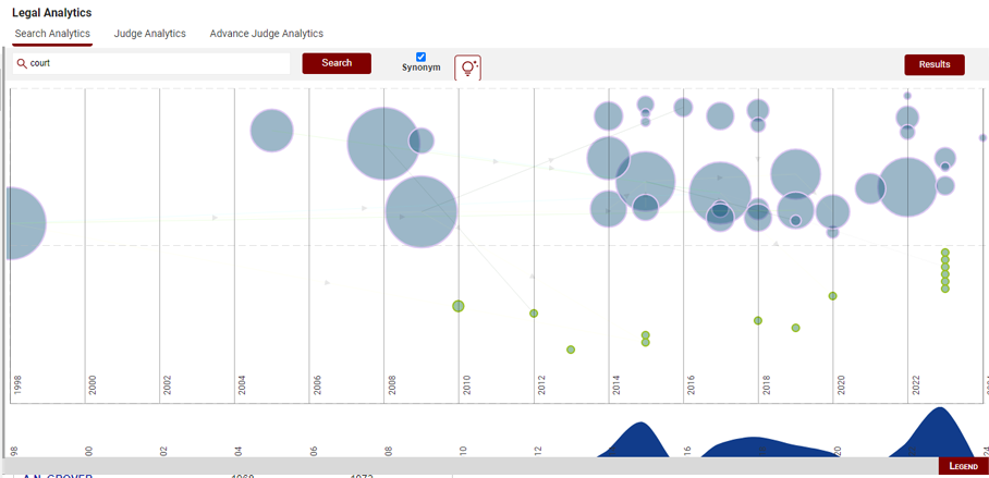 - It also features a timeline of your search results showing which years has the most cases that fall under your search.
