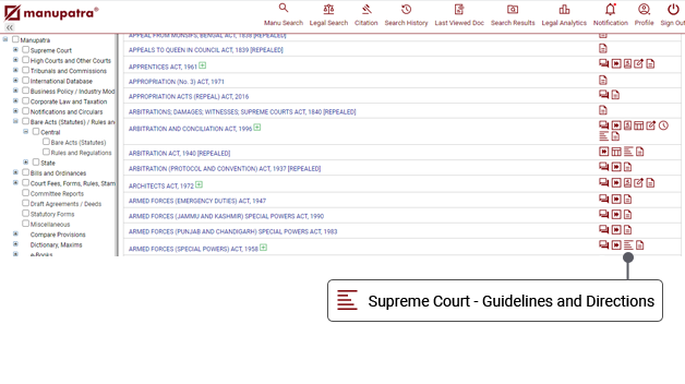 Placed in: Bare Acts Section beside the related the Act/Statute which has been interpreted or considered by Court while issuing the Guidelines or Directives.
